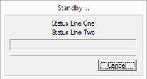 Each progress dialog has a caption, two status lines, a progress bar and an optional Cancel button (the small style does not have a visible Cancel button).